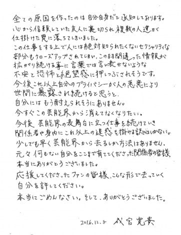 成宮が芸能界を引退したのは2016年。写真週刊誌に違法薬物の使用疑惑が報じられ、本人は否定したものの報道は過熱。「いますぐこの芸能界から消えていなくなりたい」とコメントを残して引退したのだった。