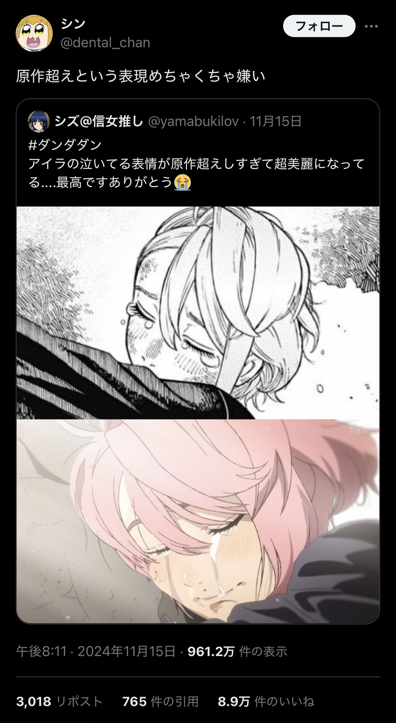| 「かっこよすぎる!」アクロバティックさらさらのオーラを取り込んだアイラが変身!「ダンダダン」【第8話ネタバレあり】 …秋アニメ『ダンダダン』の第8話「なんかモヤモヤするじゃんよ」が、2024年11月21日(木)に放送。アクロバティックさらさらのオーラを取り込んだ影響… (出典:) |