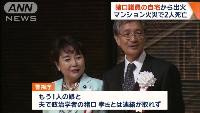 | 東京・文京区のマンション火災 2人の死亡確認 火元は猪口議員宅 夫と娘1人連絡取れず …東京・文京区の6階建てのマンション火災の火元は自民党の参議院議員の猪口邦子さんの自宅であることが分かりました。猪口さん本人とは連絡が取れていますが、… (出典:) |