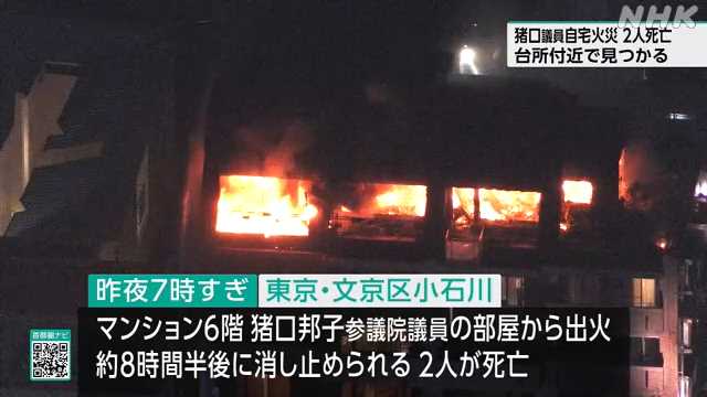 | 文京区のマンション火災 火元は猪口議員宅 救助された30代女性が死亡 夫と娘1人と連絡取れず …[00:20テキスト/01:15動画更新] 東京・文京区の6階建てのマンション火災の火元は、自民党の参議院議員の猪口邦子さんの自宅であることがわかり… (出典:) |