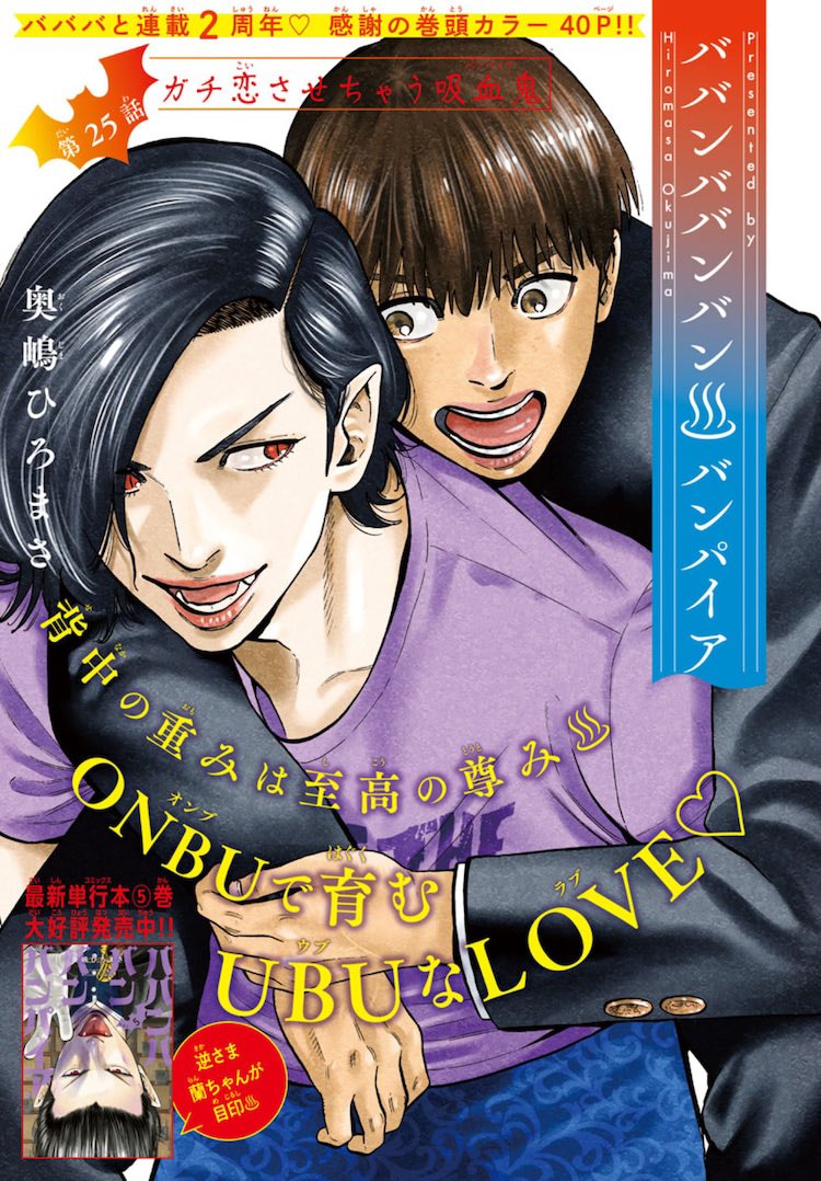 @HiromasaOkujimaババンババンバンバンパイアの漫画、アニメ、映画の告知ばかりしてるけれども、26、27日くらいに今やってる仕事の告知も出来そうです。 長く応援してくれてる方に喜んでいただけると思います‼️ お楽しみに😉🍱♨️🍚🧛