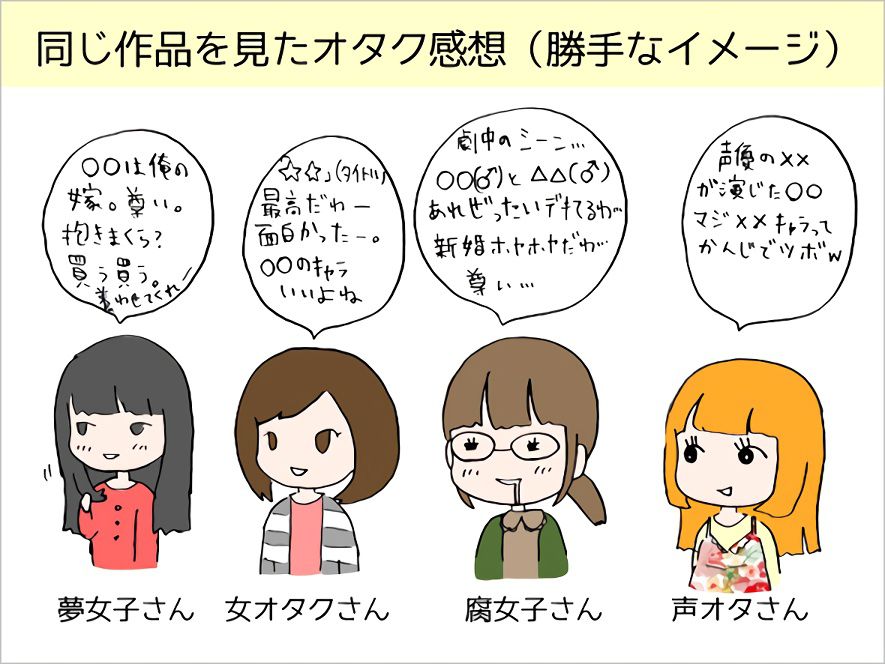 | 腐女子でも人によって好む作風・設定は異なり、その好みは「嗜好」と呼ばれる。メディアは小説、マンガ、アニメ、ドラマCD、ゲーム、実写ドラマ・映画など多様で、マイナーだが短歌もある。 社会学者の上野千鶴子によれば、自らのことを腐女子と表現する背景には、相手から「腐ったような女子… 93キロバイト (14,356 語) - 2024年7月12日 (金) 10:52 |