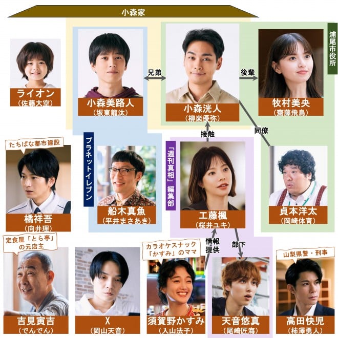 | 『ライオンの隠れ家』(ライオンのかくれが)は、2024年10月11日からTBS系「金曜ドラマ」枠で放送中のテレビドラマ。主演は柳楽優弥。 小森洸人(こもり ひろと) 演 - 柳楽優弥(幼少期:大角英夫) 主人公。浦尾市役所福祉課勤務。両親を事故で亡くしてから、弟と2人で暮らしている。 小森美路人(こもり… 15キロバイト (1,249 語) - 2024年10月15日 (火) 08:45 |